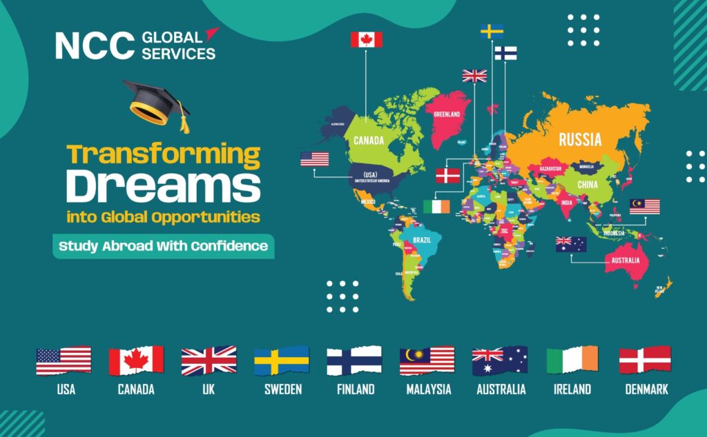 NCC Global Services is a trusted student visa consultancy dedicated to helping students achieve their international education dreams. We specialize in processing student visas for the UK, Australia, New Zealand, and selected European countries including Denmark, Finland, and Sweden.